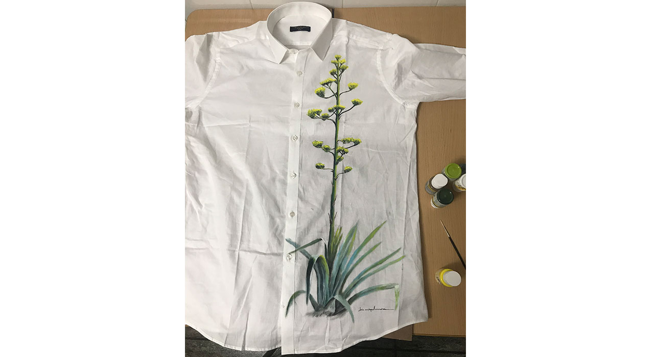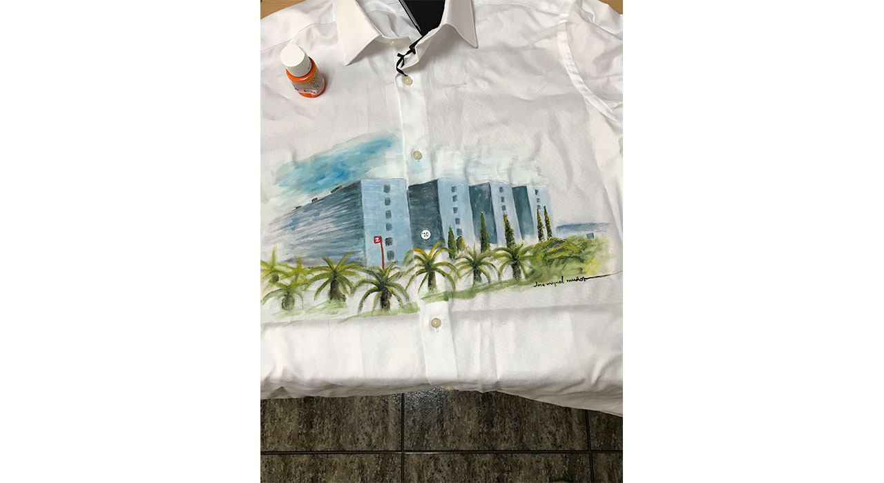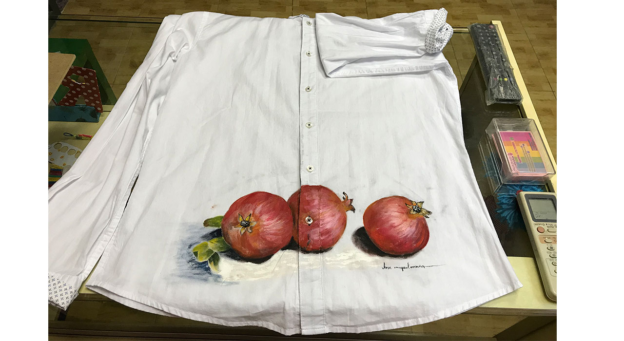 Esta camisa la pintó el artista para lucirla en la II Edición del Certamen Nacional de Pintura rápida Santomera en 2017