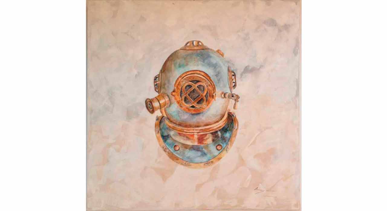 Una escafandra antigua de buzo que viene a representar esa busqueda de lo desconocido, de ver cosas y sitios que nunca nadie más a visto nunca. El descubrimiento de lo imposible.