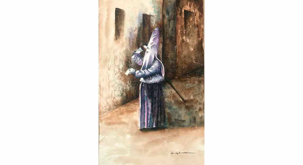 Cuadro realizado con acuarela sobre lienzo preparado.
