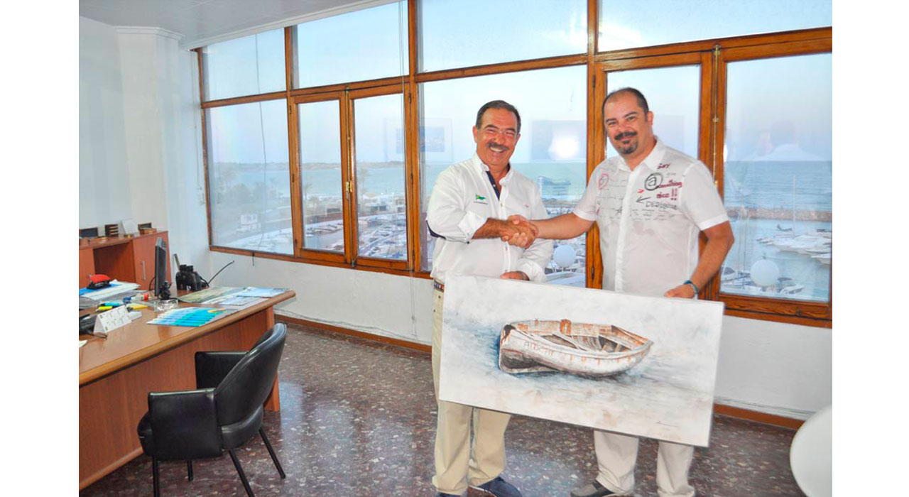 Por fin y tras su recorrido por todas las exposiciones del artista Murciano, Jose Miguel Muñoz (JOMIMERLU), el cuadro "EL RETIRO" ha llegado a su estancia definitiva en el Real Club Nautico de Campoamor.