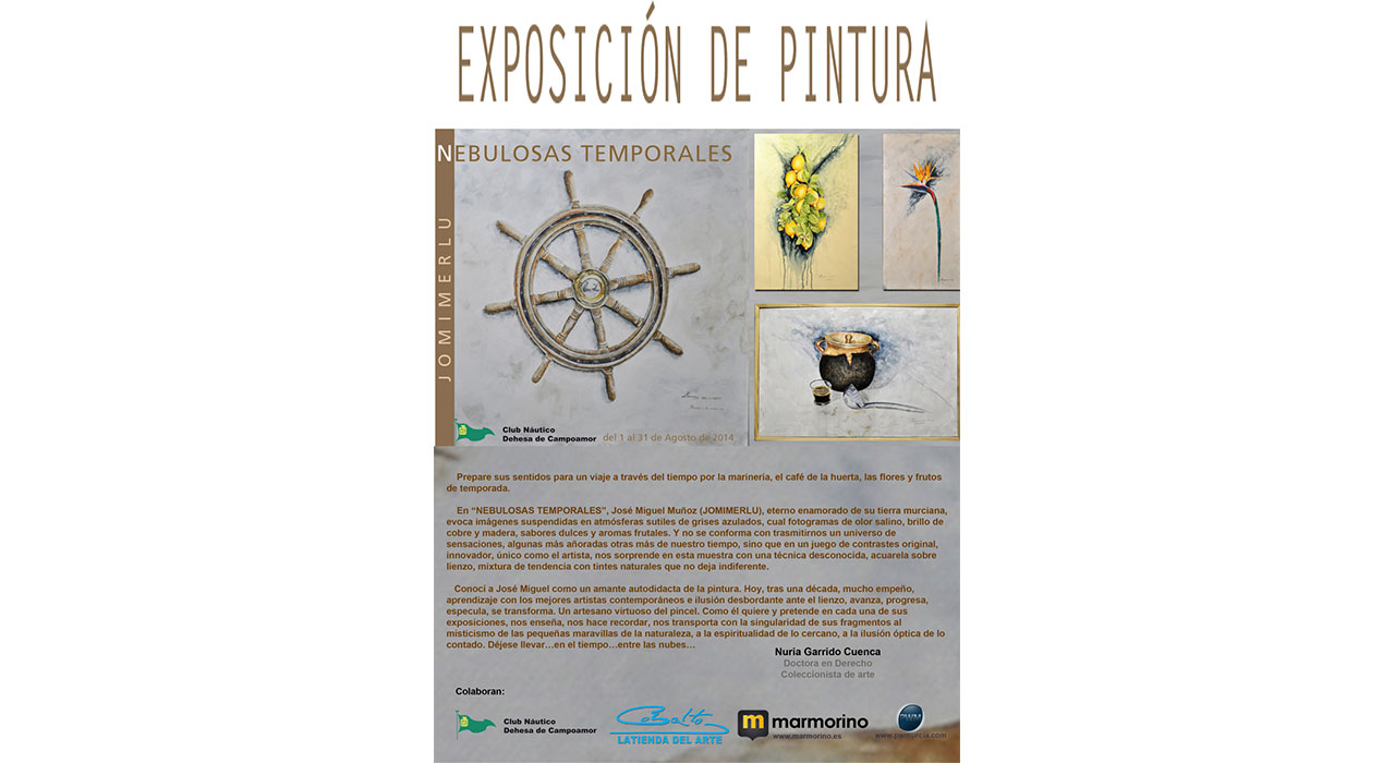 El pasado día 1 de Agosto de 2014 Se inauguró en el Club Nautico de Campoamor la exposición del pintor Murciano Jose Miguel Muñoz "JOMIMERLU".
