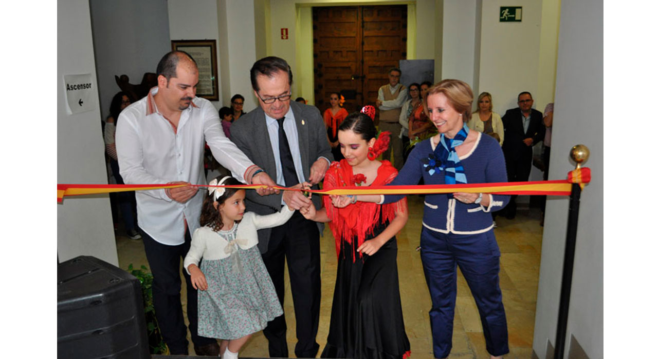 La cinta la cortaron las hijas del pintor, Luna y Abril ayudadas por el SR. Alcalde, la SRA. Concejala y el propio pintor, dando así por inaugurada la exposición y dando comienzo a los actos preparados para tal evento.