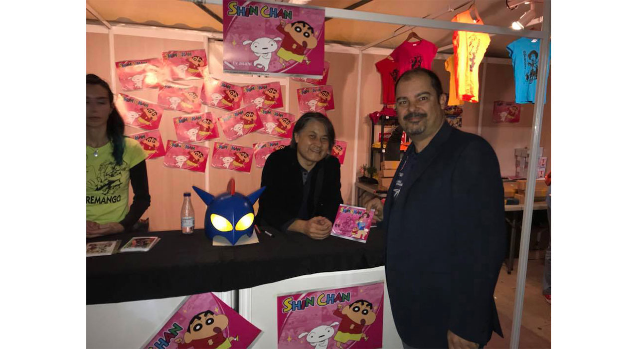 Hoy he coincidido con muchos de mis alumnos del taller de manga en el salón del ídem en Murcia. Además he tenido la suerte de poder saludar a Yuji Muto director de Shin Chan. Una tarde diferente.