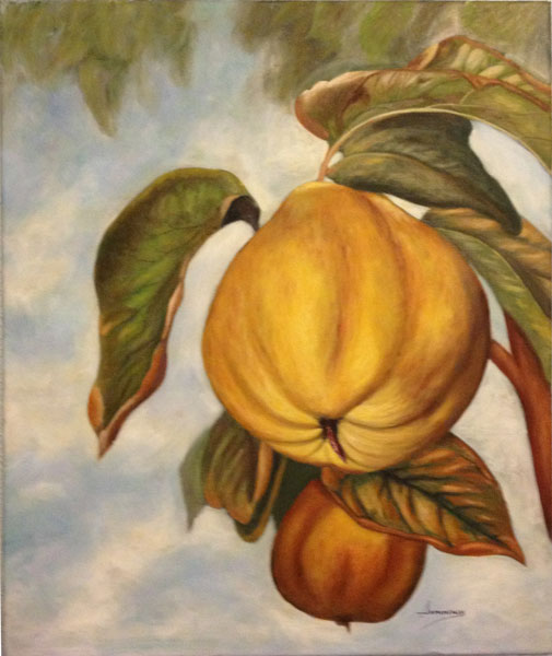 En esta ocasión el artista Murciano presenta otro de los óleos que estaban formando su colección de "Los frutos de la huerta". Membrilla es la obra que expuso.
