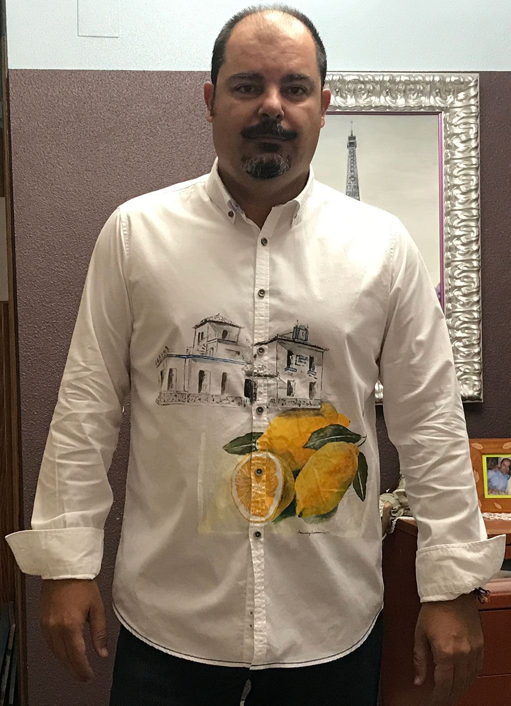 Esta camisa la pintó el artista para lucirla en la II Edición del Certamen Nacional de Pintura rápida Santomera en 2017