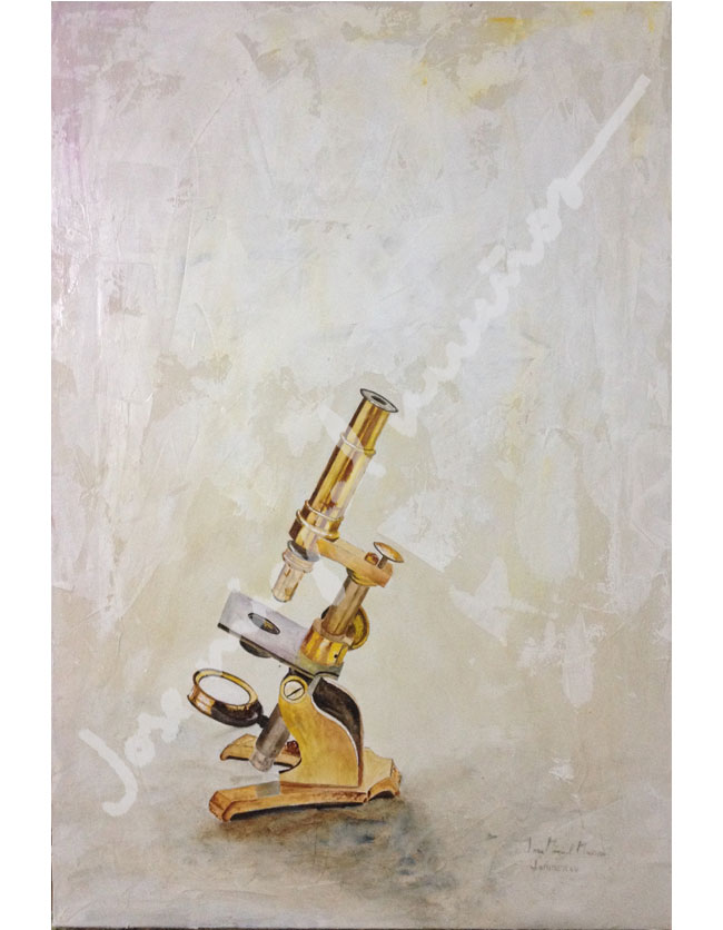 Cuadro realizado con acuarela sobre lienzo preparado. Representa la profesión del investigador que tan dura se ha vuelto en estos tiempos por falta de recursos.